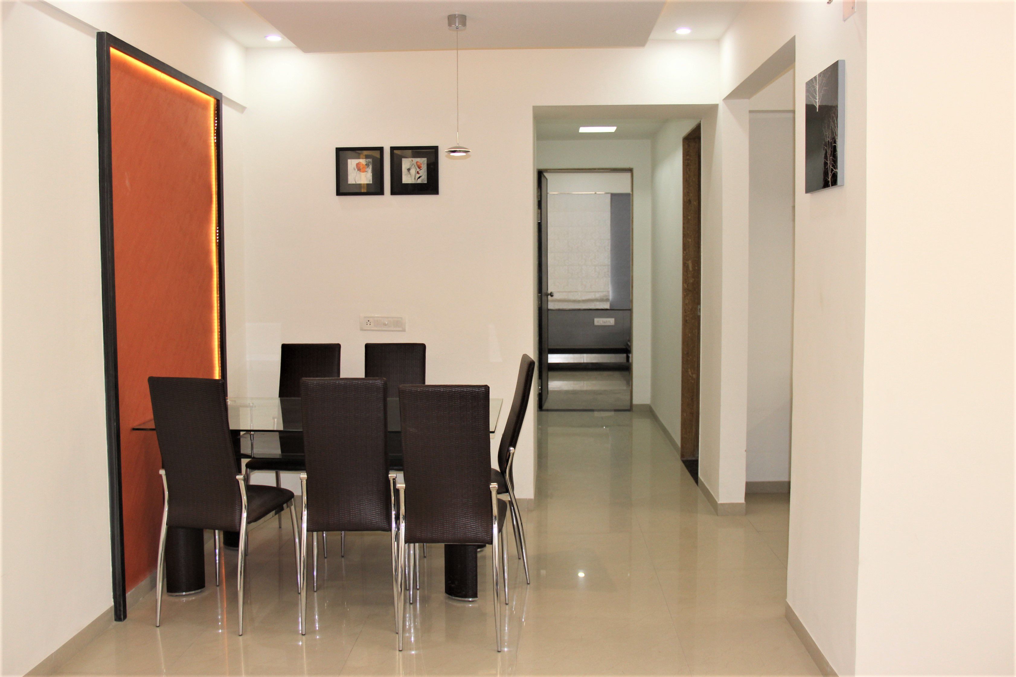 The movement in four of the houses is linear whereas the house facing the staircase is spread out laterally. One of the reasons behind this kind of a layout is to ensure that each room gets a view outside, while managing to fit in five similar units in the limited space. Also, two adjacent apartments can be combined together and treated as a single larger apartment.