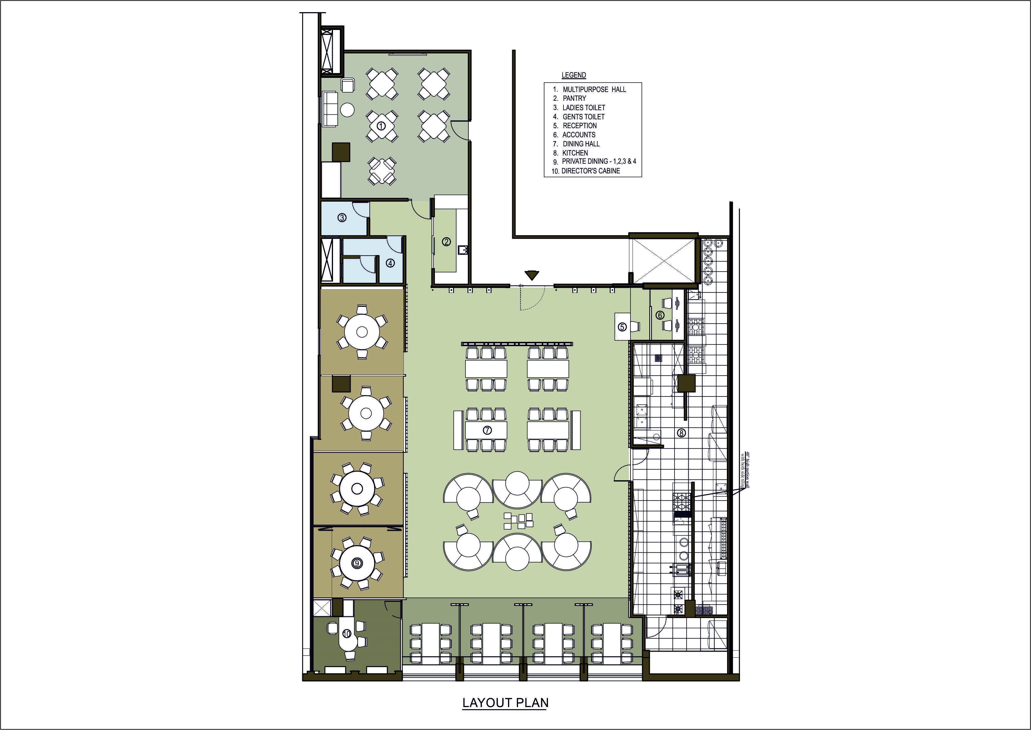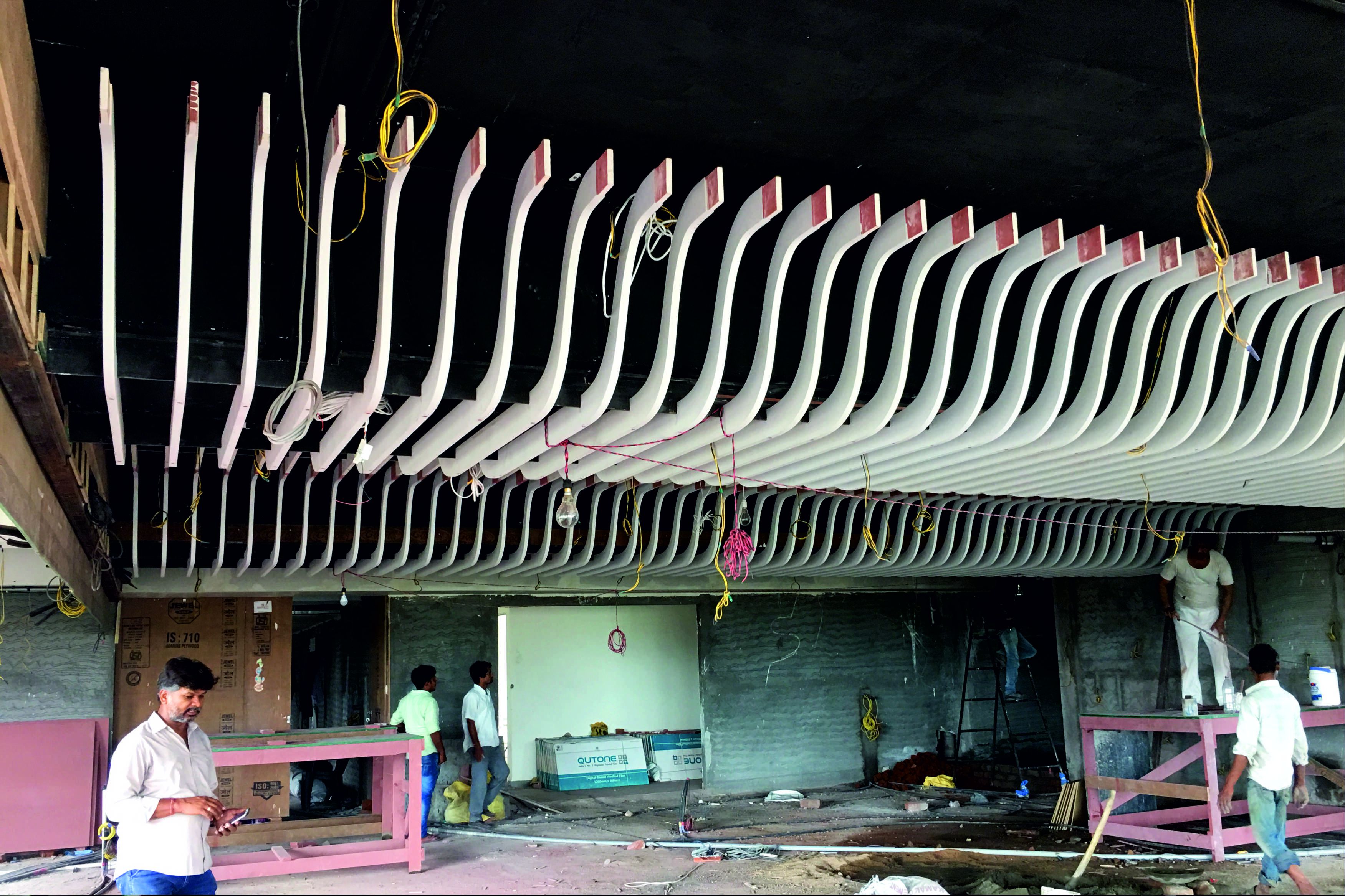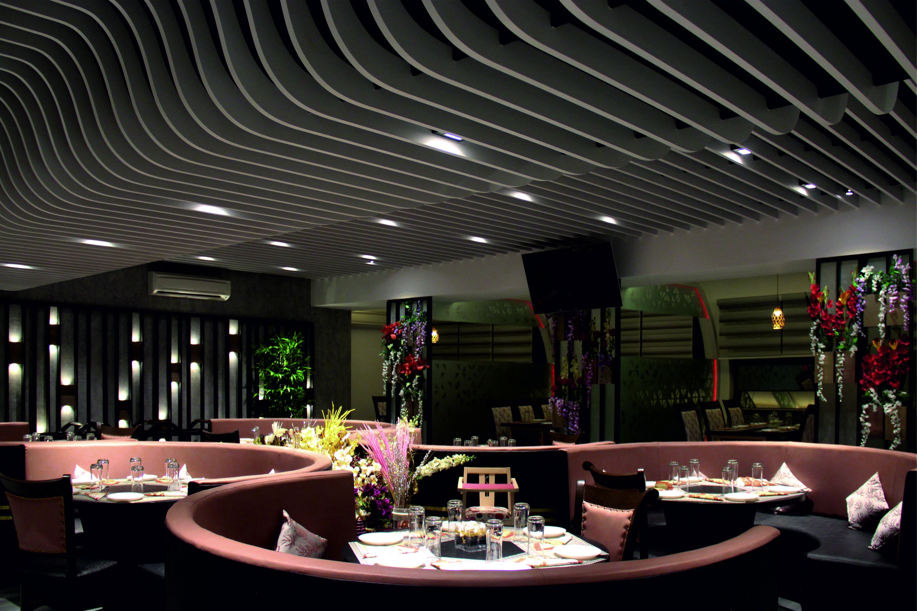 The core idea behind the variety of spaces in this restaurant is the diversity of culture and lifestyles seen in India. The common shared dining is different from the private dining spaces, yet due to their visual connectivity, they complement each other. The reason behind the wavy ceiling and the intermittent arrangement of the lights in the walls is to make those spaces livelier.