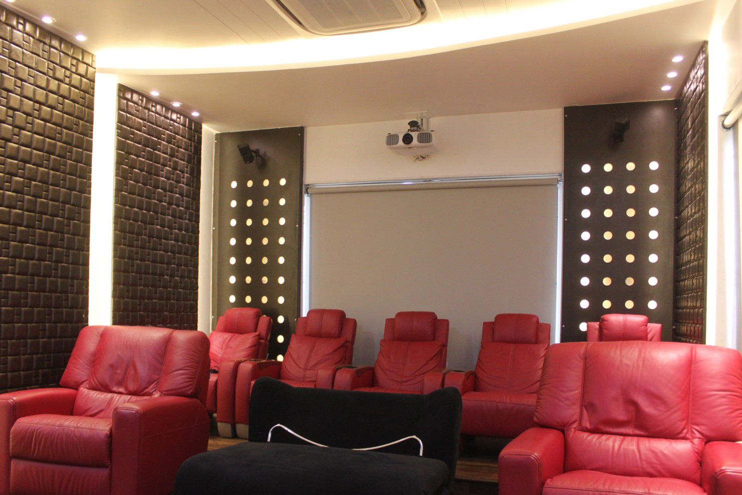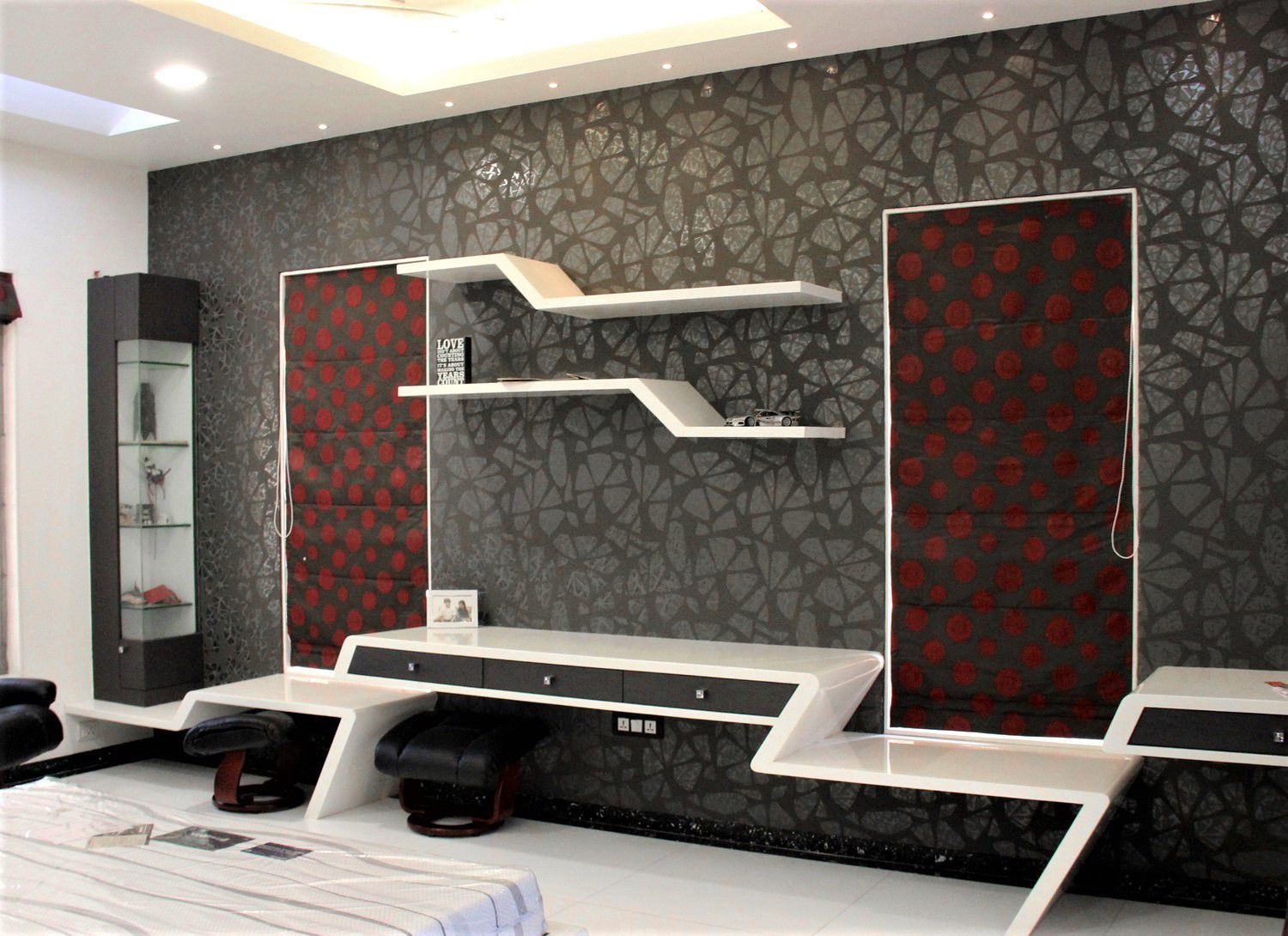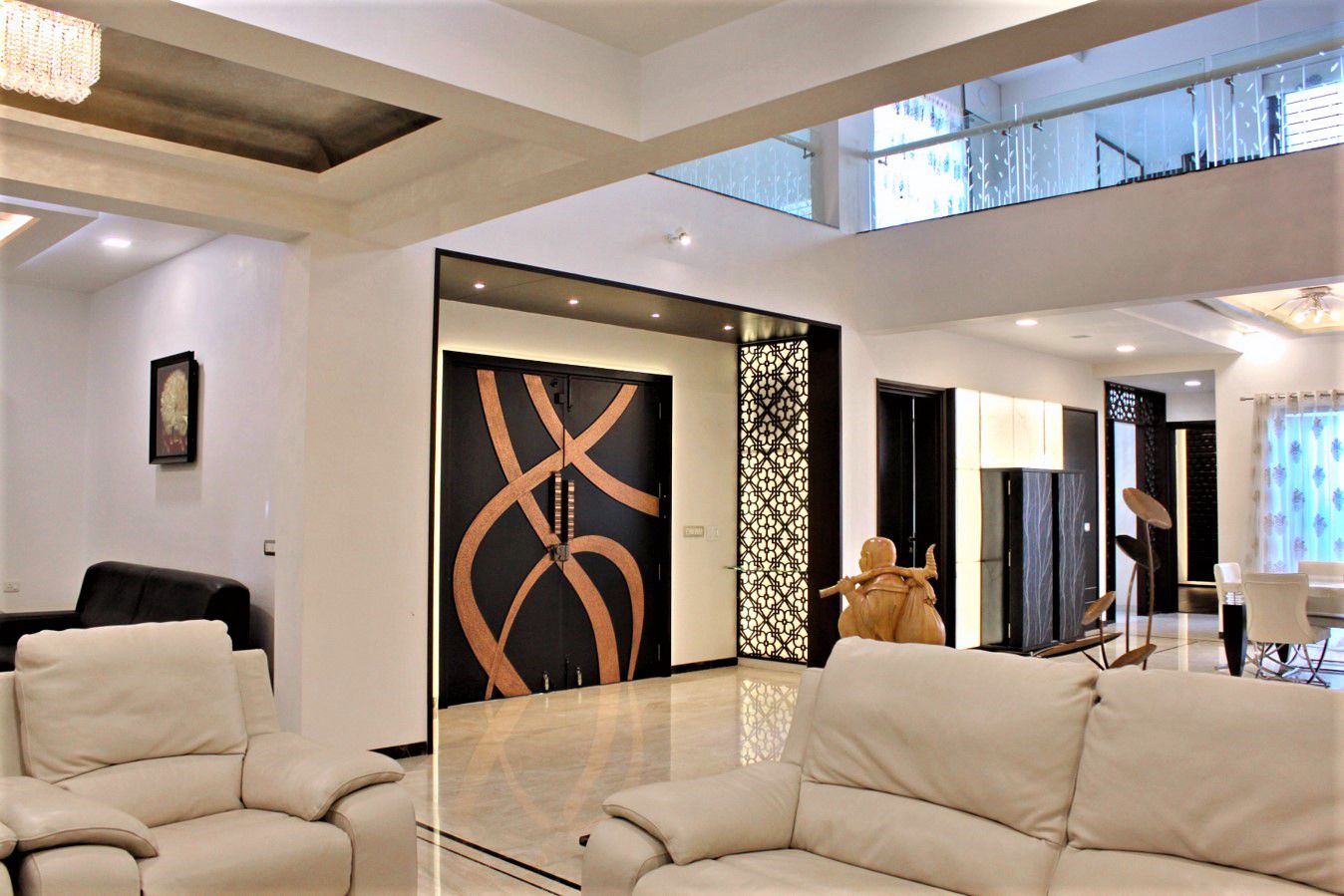 Every client aspires for their homes to be extraordinary and unconventional. In this house, it was no exception. The entrance of this bungalow is marked by a water body and a Buddha statue in front of it. This element helps create a tranquil atmosphere throughout the adjacent living area and the dining areas. All the different spaces are interconnected visually through the central double height space with the focus on the central water body and the tree of life mural. All the individual rooms although thematically diverse, yet uphold that exquisite feel as they are dynamic and bold in terms of the colours and the furnishings.