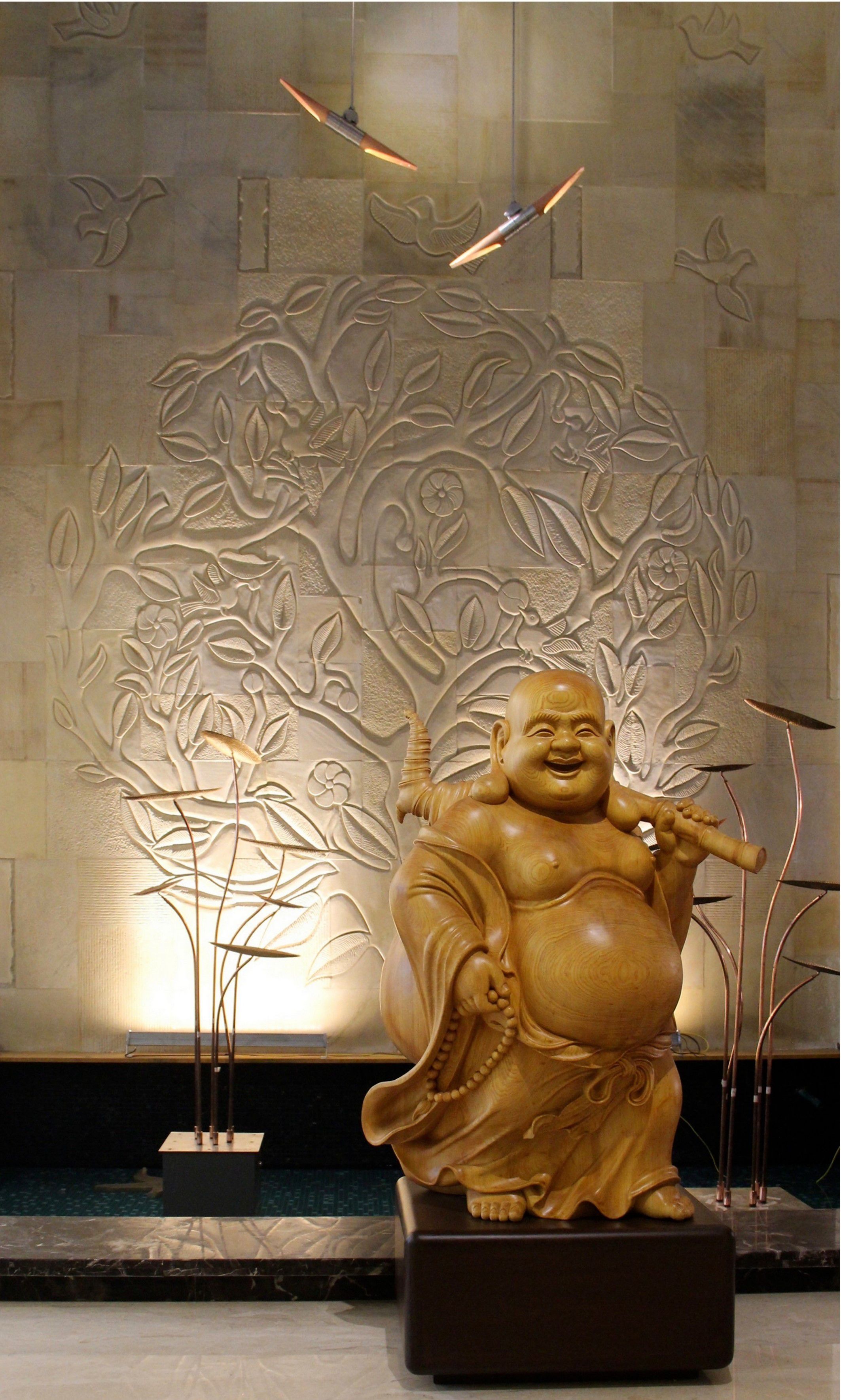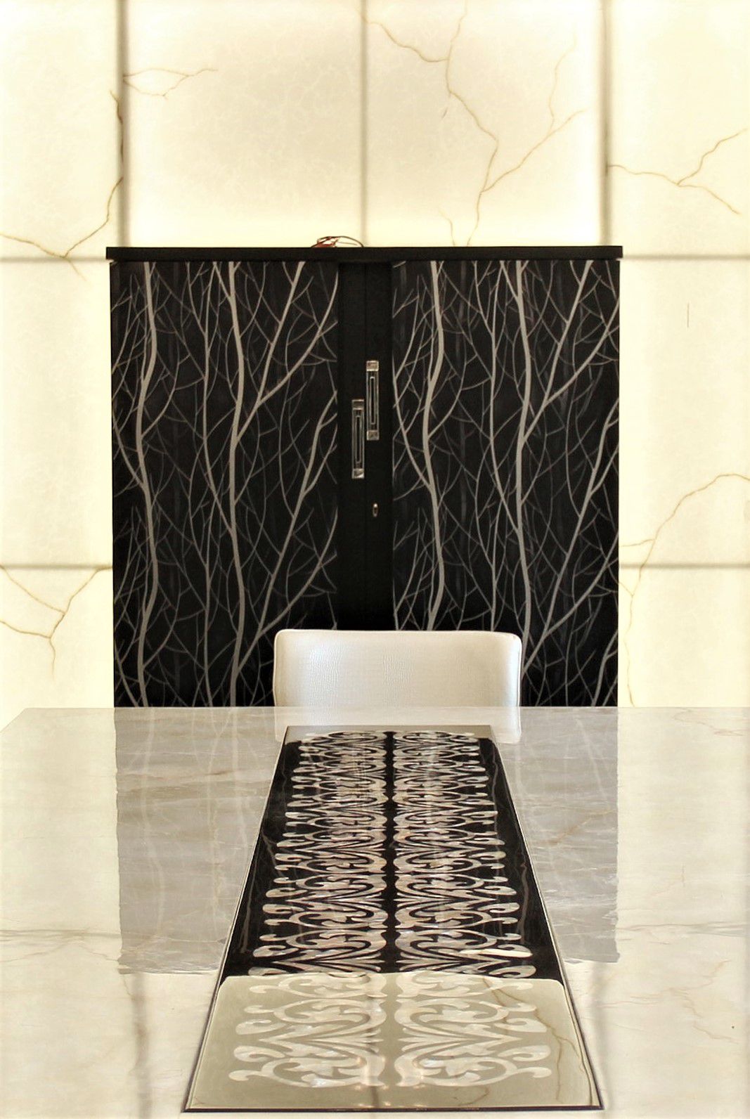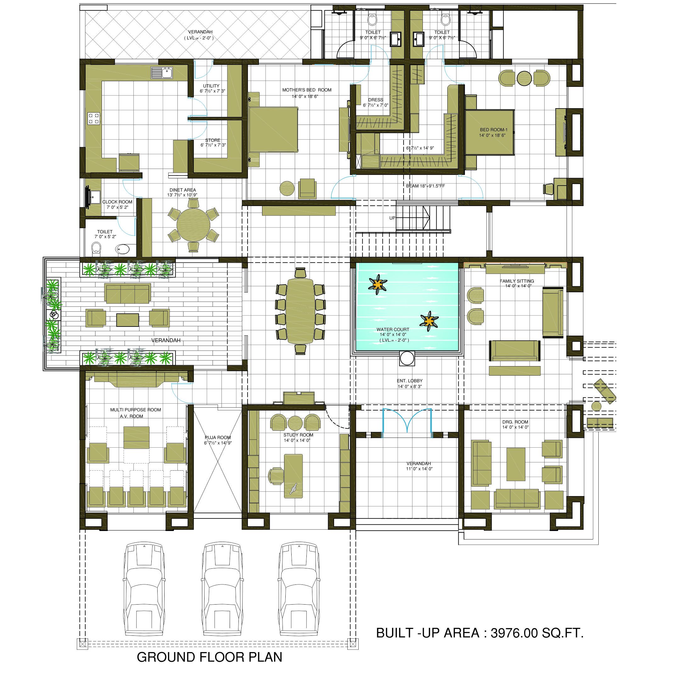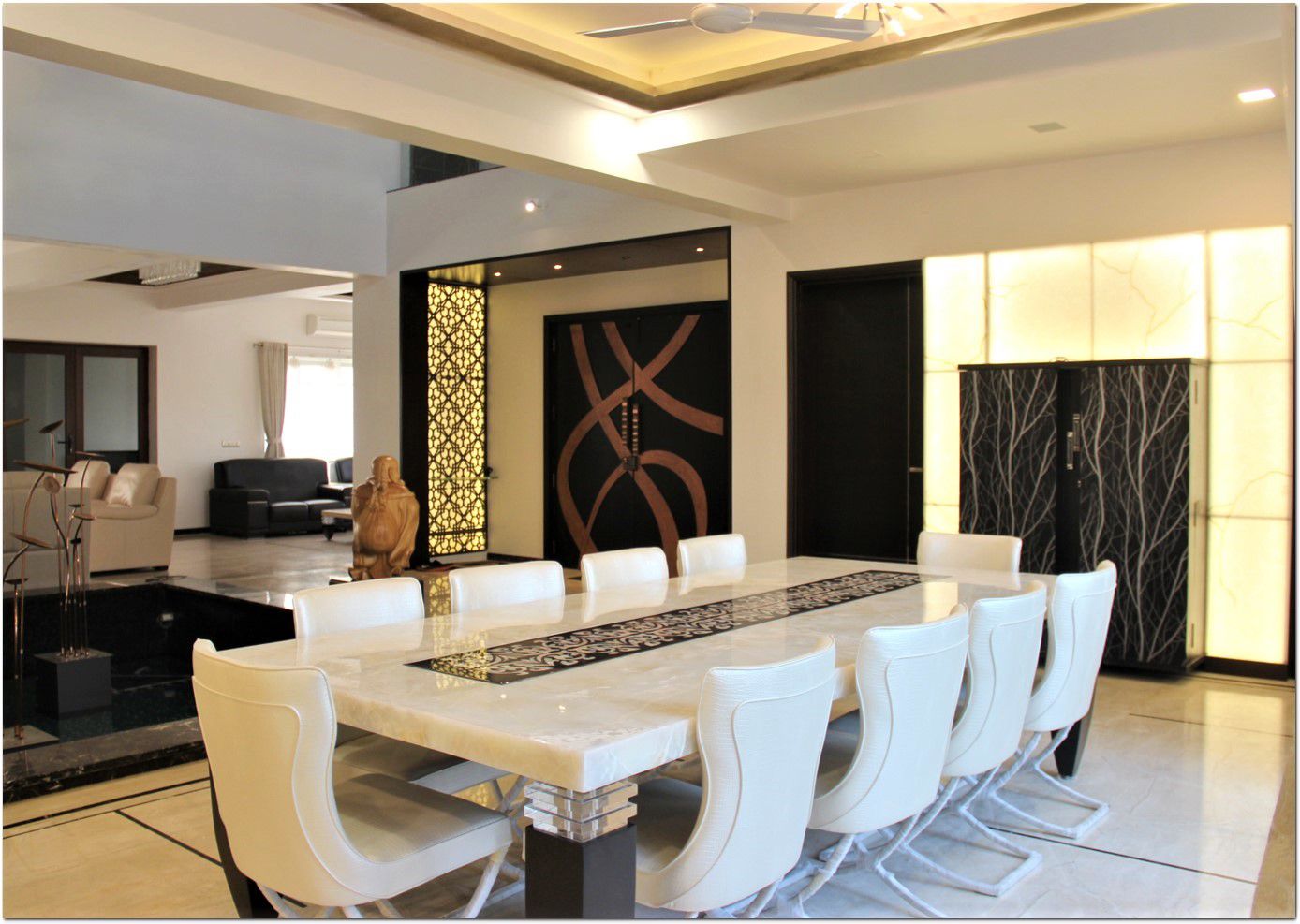 Every client aspires for their homes to be extraordinary and unconventional. In this house, it was no exception. The entrance of this bungalow is marked by a water body and a Buddha statue in front of it. This element helps create a tranquil atmosphere throughout the adjacent living area and the dining areas. All the different spaces are interconnected visually through the central double height space with the focus on the central water body and the tree of life mural. All the individual rooms although thematically diverse, yet uphold that exquisite feel as they are dynamic and bold in terms of the colours and the furnishings.